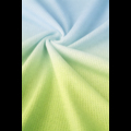Трикотажное легкое полотно, небольшой плотности. Внешняя поверхность имеет фактуру в виде маленьких углубленных точек, изнаночная сторона гладкая. Пропускает воздух и испаряет влагу хорошо. Материал очень мягкий и приятный на ощупь. Хорошо растягивается во всех направлениях, но не деформируется.