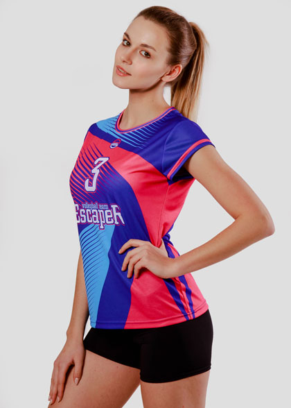 EscaperОписание: Женская волейбольная футболка полуприлегающего силуэта. Круглая горловина из эластичной рибаны. Втачной рукав без манжеты. Сублимация изделия обеспечивает возможность выбрать любые цвета и дизайн которые не выцветут за любое количество стирок. Полная сублимация — любой цвет и дизайн (уже входит в стоимость).